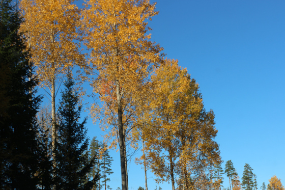 Oli kohtalaisen sateinen syksy, ja ruska oli matkakaverin mielestä laimea, hän olisi halunnut näyttää parhaan loiston… mutta minä,minä henkäilin ja huokailin miten ihanaa kaikki oli, tunsin itseni sinisen taivaan sateenkaareksi, ihmeeksi,jota ei oikeasti voi olla. Pitkään aikaan tuota laulua ei ole kuulunut, vaan kuuluipa nyt yhtenä aamuna, ja eukon rinnassa läikehtivät vanhat muistot.