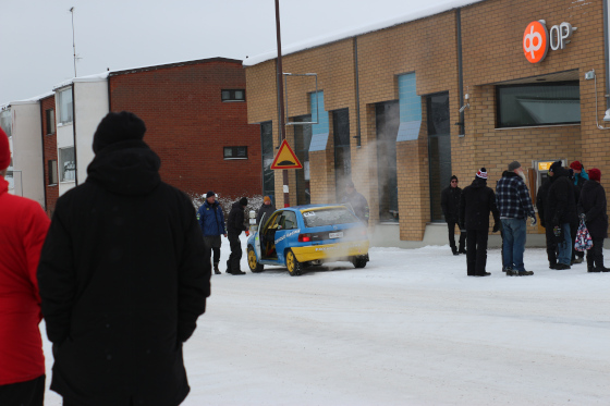 Mäntyperän eukko ol aatelt, et ens kertaa paikalliset rallit jääp kokonaa näkemätä, ko tuo oma kulkemine on yhtä rollaamista kaiket päivät. Vaa niihä siin käi, et lauantakpäivän valetes pit soittaa asioimistaksi kauppareissuu varte, ja jo menomatkal sai ihmetellä Heituinlahe urheilutalo pihhaa aurattuu huoltopaikkaa, joho jo muutammii kuljetusvaunui ol ehtint.