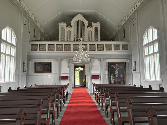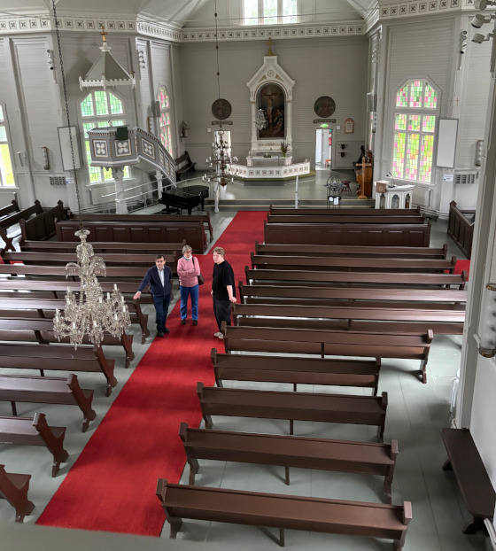 Auki oleva kirkon ovi houkutti pysähtymään ja pistäytymään sisälle. Eteisessä vastaan tuli hernerokan tuoksu. Saavuimme Vilppulan kirkkoon Pirkanmaalla.