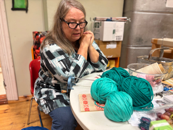 Heli Sairanen opastaa kutojia Tapiolassa joka keskiviikko kello 17–19.30. Kutojat sen sijaan voivat käydä siellä aina halutessaan, sillä ovi on suljettu koodilukolla.