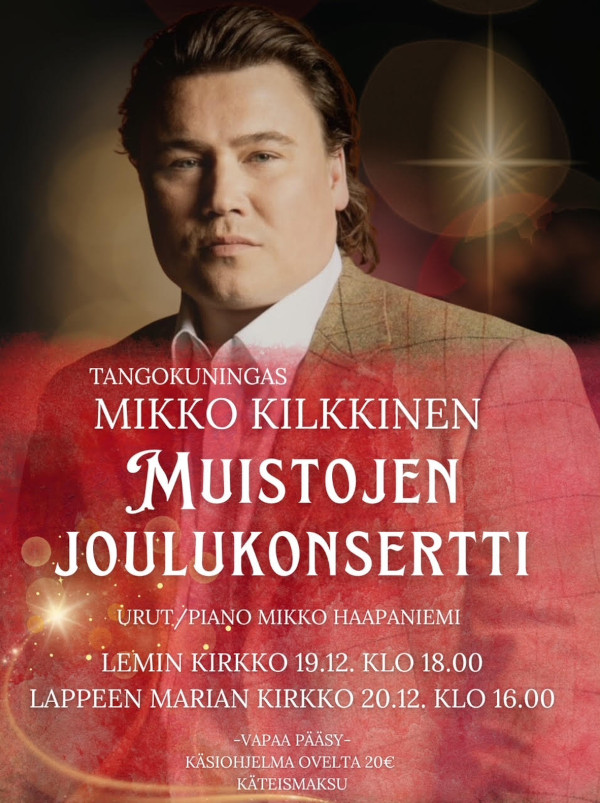Tangokuninkaana tunnetuksi tullut Mikko Kilkkinen pitää perjantaina 19. joulukuuta konsertin Lemin kirkossa.